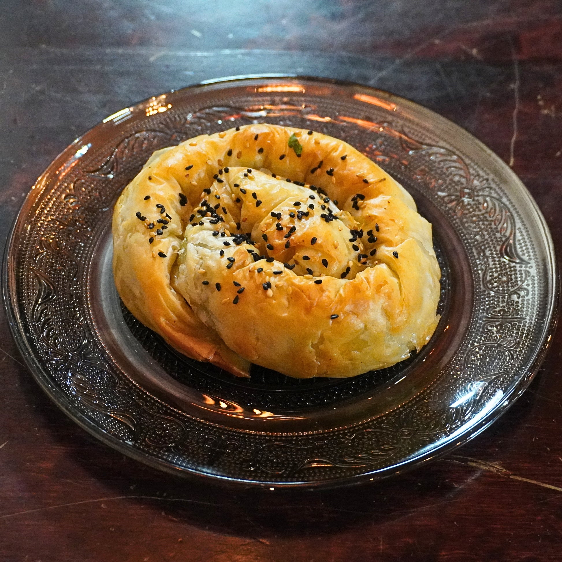 Huisgemaakte borek van filodeeg met kaas-spinazie vulling.